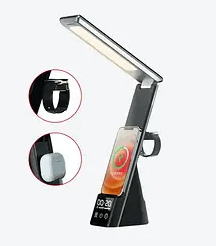 1. Lampa din Lemn cu Încărcare Wireless & Ceas Integrat